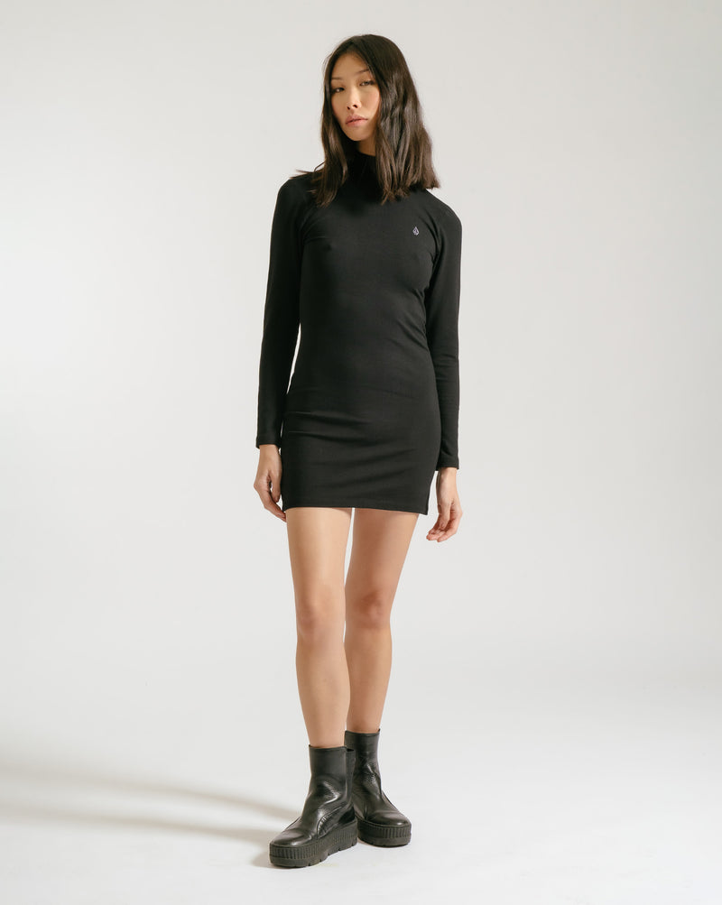 Vestido Volcom Lived In Lounge. Possui modelagem ajustada, gola alta, decote nas costas, fechamento em botão e bordado Volcom Stone frontal.