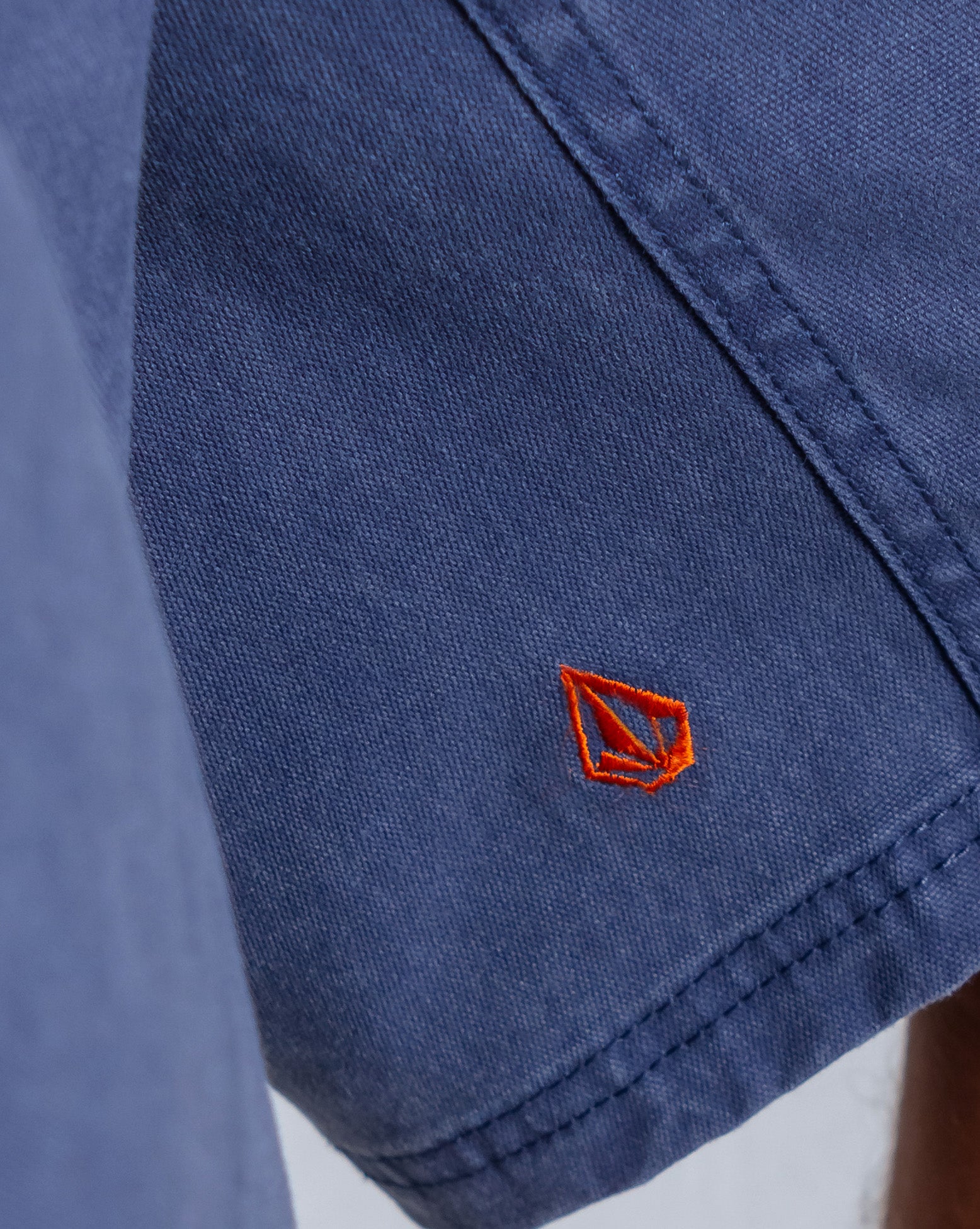 Walkshort Volcom Gage Work Blue Wash. Possui 21” de comprimento, múltiplos bolsos, botão indestrutível, etiqueta Volcom Workwear lateral, etiqueta Volcom Workwear traseira, bordado Volcom Stone Workwear e lavagem pesada vintage.